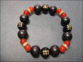 パワーストーン京屋オリジナル/戦国武将 真田幸村【六文銭】家紋 オニキス、カーネリアン、黒檀(こくたん)13mmブレスレット【天然石の京屋】