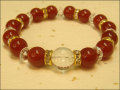 パワーストーン京屋オリジナル/戦国武将家紋!真田幸村【六文銭】12mm 本水晶・カーネリアン・ロンデルブレスレット【天然石の京屋】