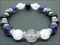 アメジストの紫色は、意識の変化を象徴する色や、心を優しく穏やかにし安らぎを与えてくれる色とも言われ、直感力、インスピレーションを高めてくれるとも 伝承されています。